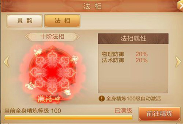 2、全身的精炼等级每达到10的整数倍,法相的阶段就会提升