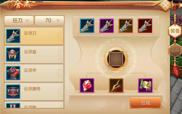 4、通过合成系统,玩家可以打造蓝色、紫色、橙色、红色装备,只需要集齐制造书、所需素材即可