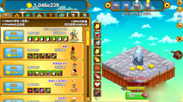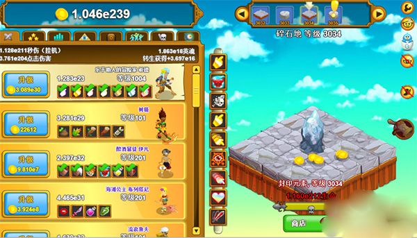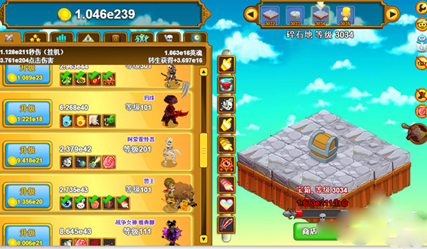 点击英雄ios版是从Steam以及网页版中广受好评的同名作品移植而来的一款放置类角色扮演手游,它的原版英文名为:Clicker Heroes。该游戏画面采用细腻的奇幻风格制作,其中华丽的场景、蠢萌逗趣的角色、旋律动听的音乐以及引人入胜的剧情将给玩家沉浸式冒险体验。除此之外,点击英雄内关卡副本众多,让玩家能随心所欲的刷刷刷,再加上神器获取、技能搭配以及多个人物培养养成玩法,让给你体验放置角色扮演丰富可玩性的乐趣。