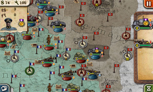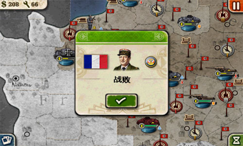 在巴黎组建装甲车,在指挥官坦克的火力支援下,消灭了巴黎城外的戴高乐部队,老戴您赶紧重新制定战术再来被灭一次吧。