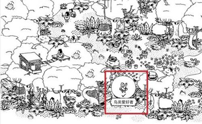 11、鸟类爱好者:左下角最下方有一处地方有很多停留的鸟,多点击几次让鸟儿飞开,会露出一个人,点击这个人即可。