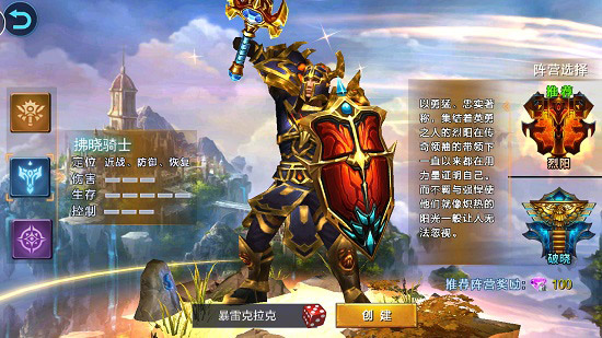 游戏中目前拥有拂晓骑士、战争大师和精灵法师三大职业可供大家选择: