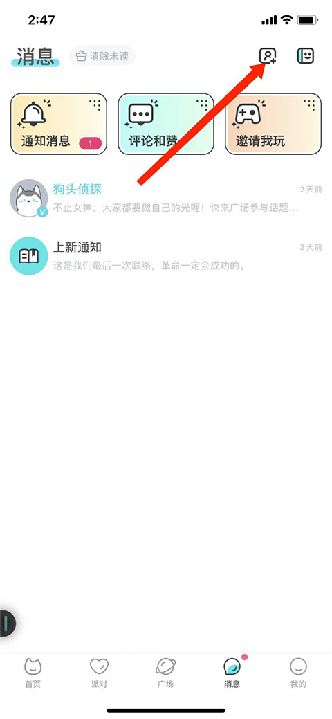 2、进入【消息界面】,选择右上角【通讯录】图标,