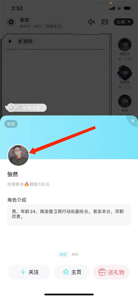 1、在游戏房间中,点击想要添加好友人的【头像】,