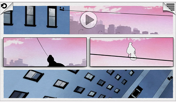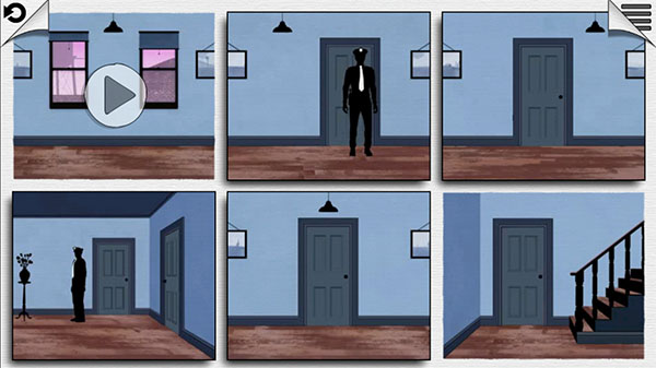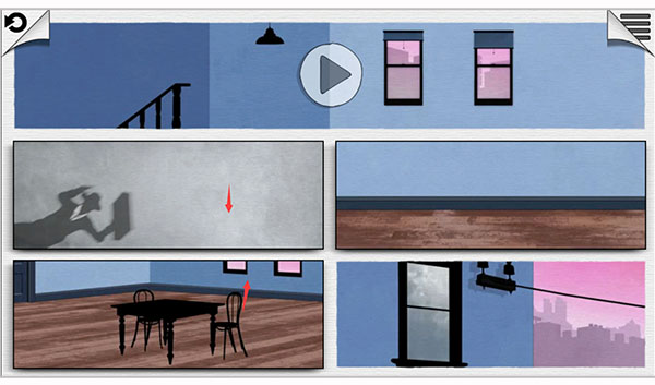 画面瞬间豁然开朗,我们随着主角来到了窗外,如果什么都不做,主角便会从滑索跌落,从而游戏结束,我们只需要简单的交换一下中间两张图片的位置,即可为主角逆天改命,让主角乘滑索潇洒离去
