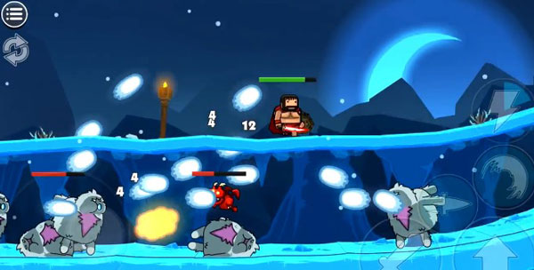 操作不复杂的,分为左右2侧,左侧主要控制移动,右侧跳跃、攻击、技能都非常的明朗,因为是横版,所以跳啊走啊会很多,有些怪物会上往下跳下来,最好蹲下来防御的情况下去攻击。