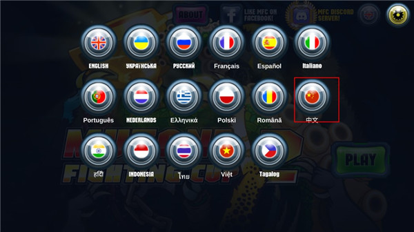 1、进入游戏,刚开始是英文,在右上角更改语言。