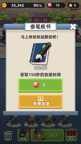 另外奋笔疾书这一个加速效果还会让你在150内效益大幅度增加。