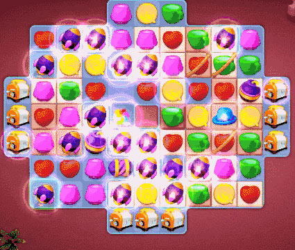 - 爆破炸弹:匹配5个连成竖折型或者丁子型的元素,可以合成一个爆破炸弹。双击爆破炸弹或将其和附近的一个元素进行交换,将会消除周围元素。