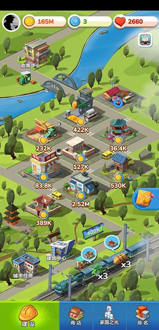 此时,其他建筑升到100级就会有大量的奖励,拿这些奖励去抽奖也许会抽到三星建筑。