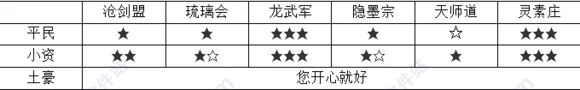 平民小资土豪的金额标准因人而异,这里不做详细的区分,主推龙武军和灵素庄,正常氪就能玩好,不氪还能当混子,美滋滋!