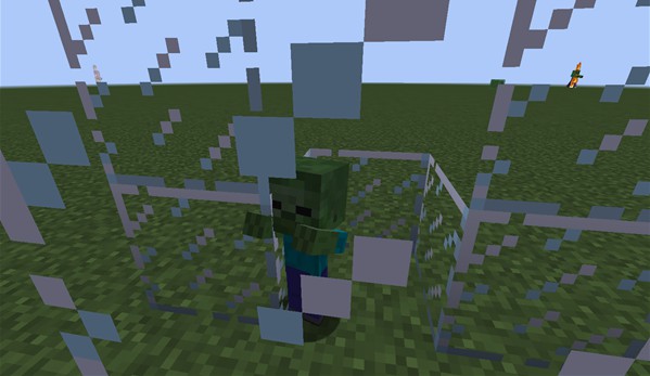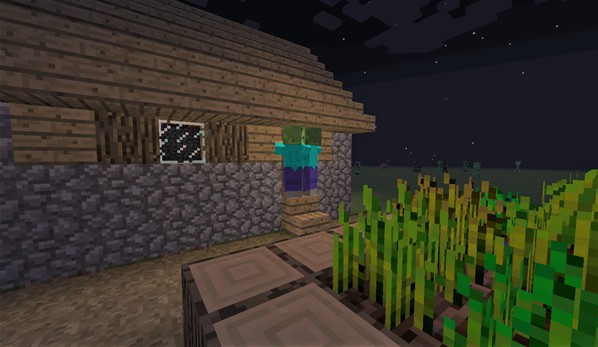 试图击碎村民家大门的僵尸,如果难度设置为困难,他们就有可能打碎木门。