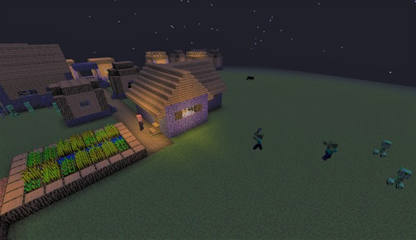 在夜晚向村庄发动袭击的僵尸群,有趣的是,只有僵尸对村民有着极强的执念