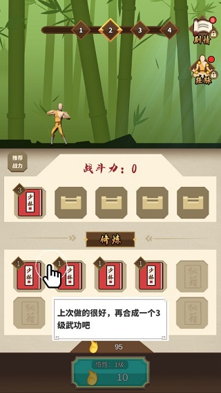 书籍合成的方法也很的简单,就是将两本一样的书籍合成在一起提升至更高一级,最高可以装上七本书,每一本武学秘籍装上之后,主角都能发出相同的武学招式,而且每次查看武学秘籍还会有小人向你示意这个招式怎么用。