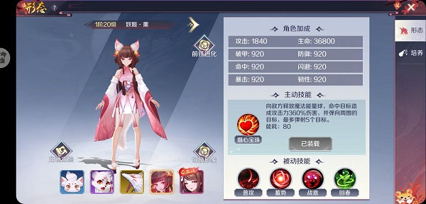 进化至妖姬、天姬时还会逐步解锁另外两个被动技能,会给妖姬的主动神技添加独特的效果,包括提升技能伤害或对主角的瞬时增益等。