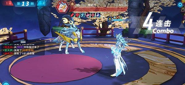 接着,神武月的血量也所剩无几了,我们用黄金圣天伊换上阵,对可兰的防御属性进行清除,然后羽月使用一招烧伤加技能,就可以直接搞定了。