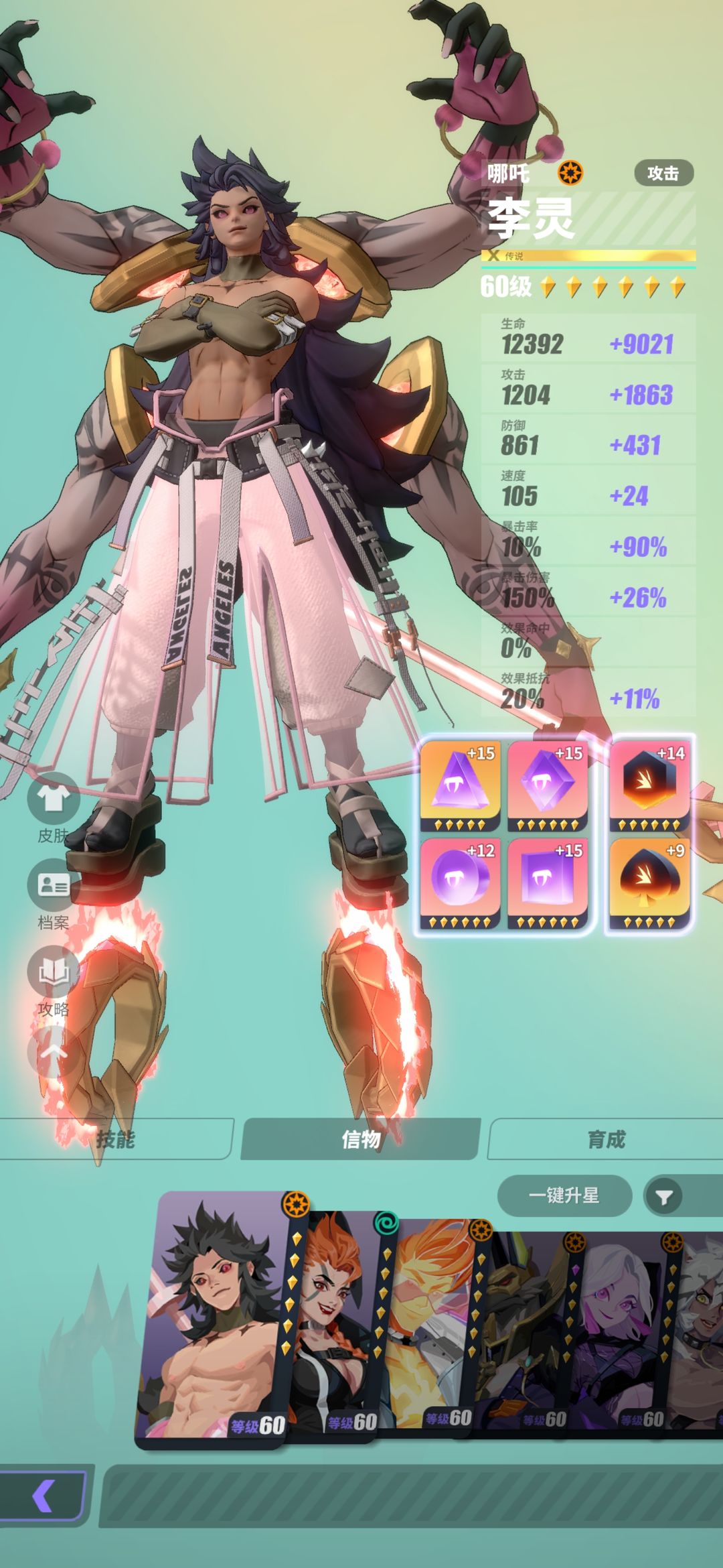 首先是哪吒,输出给力,最好别喂技能,二技能拉满也行,减cd,满爆,170爆伤,勉强够用