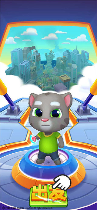 观看完开场动画,我们可以看到一直汤姆猫在游戏中间,下方是一个出发按钮,这时候我们点击“出发”按钮,即可以开始第一次游戏;