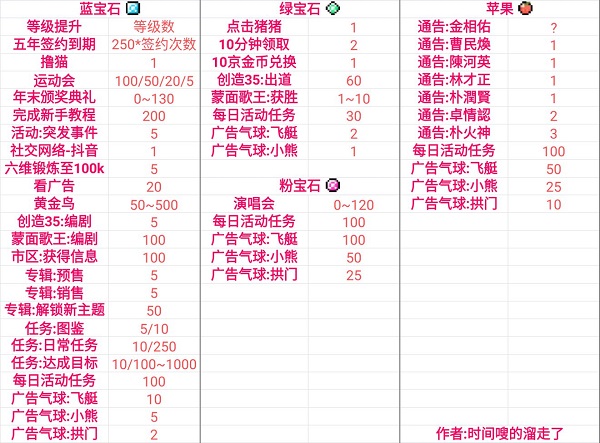 1、开演唱会:赚金钱和紫钻。主要赚钱来源,一个场子能开满就赶紧去下一个场子。我目前这个进度的话,一场能赚两三兆,紫钻几十个。