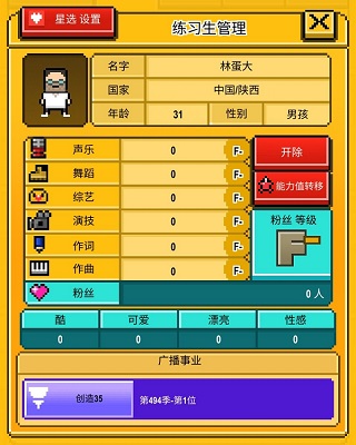 星光创造营苹果版是一款模拟偶像培养的养成类游戏,游戏中您不再是练习生,也不是素人,而是独当一面的公司老板,期间你不但要管理公司运营,还要针对不同的新手练习生进行筛选和培养,又或者前往街头寻找合适的素人,看看他们有没有兴趣担任偶像呢。总体来说,这款星光创造营游戏的可玩性非常强,以贴合娱乐圈的经营项目为准则,以艺人的培养和发展为方针,通过开办演唱会的、发售个人或团队专辑来收获更多粉丝的宠爱,甚至你还能借由其他商业活动来增加艺人的曝光率,比如参加电视台的《创造35》、《蒙面歌帝》两款超火爆的选秀节目,但也别忘了,照顾艺人的身体哦。