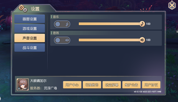 打开游戏右下角的【设置】图标,这里集合了画面、游戏、声音和战斗设置四大项,下面为大家简单介绍一下吧。