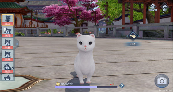 每只爱宠都可以学会不同的动作,谁不想让自己的爱宠对自己撒娇卖萌呢?点击训练按钮即可进入训练界面。可以让爱宠训练不同的姿势,比如坐下、埋屎、转圈等。(当前版本只开放狸花猫和白貂宠物训练)