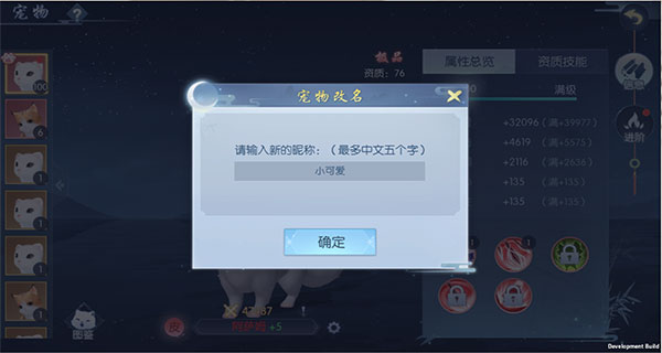 如果玩家想给爱宠取一个萌萌哒的名字,可以点开改名按钮进行改名的,完全免费哦。
