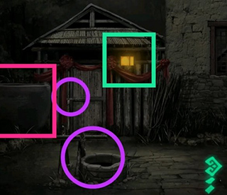 11、密码打开门,得到道具装在水井上。查看灯笼线索。粉色方框缸内有虫子。