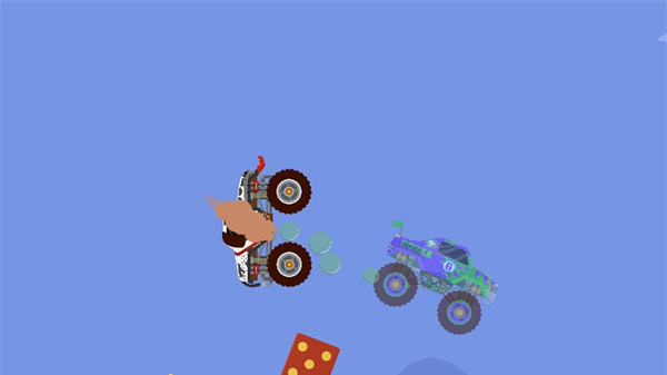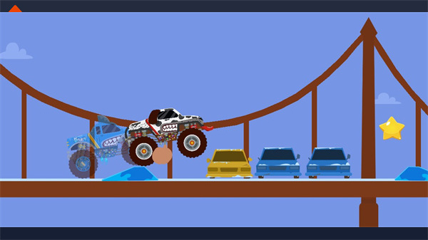 1、大脚车总动员游戏操作非常简单,点击左边屏幕减速倒退,按右边屏幕前进加速,旋转设备控制车的角度,不过要得到高分可是需要技巧的!