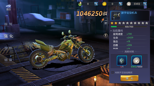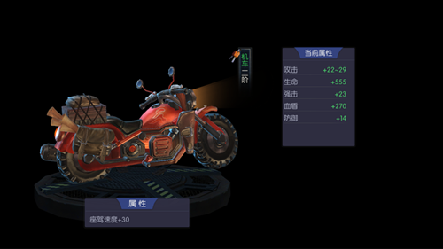 座驾强化星级提升到满星后,可以进阶,座驾进阶可以解锁新的外形,同时大幅度增加一些属性。