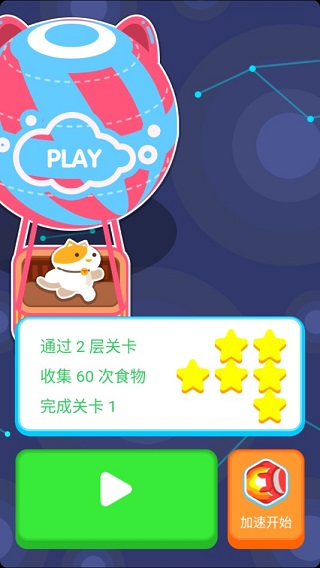 天天飞喵是一款休闲冒险类的闯关游戏,游戏的类似玩法与《笨鸟先飞》相差无几,但从该游戏的视觉画风和玩法的丰富性上,相比《笨鸟先飞》有着更加出色的表现。在游戏中玩家需通过简单的点击屏幕控制小猫的上下跳动,在躲避沿途障碍、飞鱼的过程中,收集饼干或捕捉关卡目标下的鱼类数量,有趣的一点就是游戏关卡内的鱼类种类有着不同的特性,例如小电鱼,在被捕捉时会紧张过度发出一条电流,导致其他小鱼也被捕捉,其他的还有电鳗,间歇性全身放电,放电后无害,类似的鱼类特点还有很多。当然除了以上涉及到的这些玩法外,在天天飞喵游戏中支持小孩模式,并在小孩模式下进行游戏,没有广告,没有内购,放心交给小孩子玩!还孩子一个干净的游戏环境!