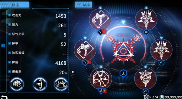7、ARK 这东西算是本游戏的装备,可以提升机甲的能力值,而其中又分为 α、 β、 γ、λ这四种,每个 ARK 可装的位置都有对应,就像手套只能穿在手上一样的意思。