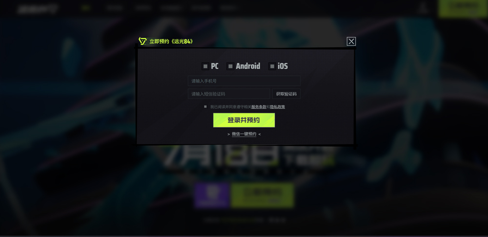 1、首先打开远光84官网:https://84.lilith.com/,点击右上角立即预约;