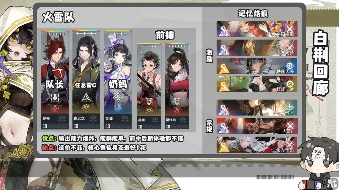 其次可以选择一些适合给火雷队中昊苍和雷系远程增伤的烙痕,例如空,残照,化为千鹤