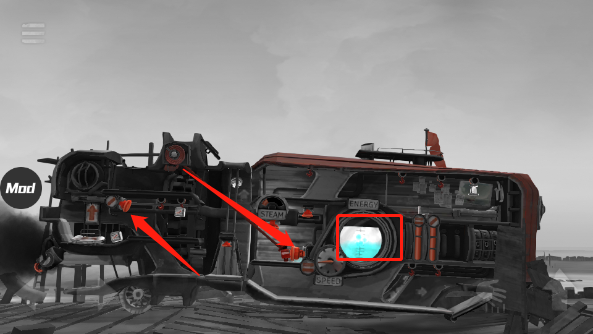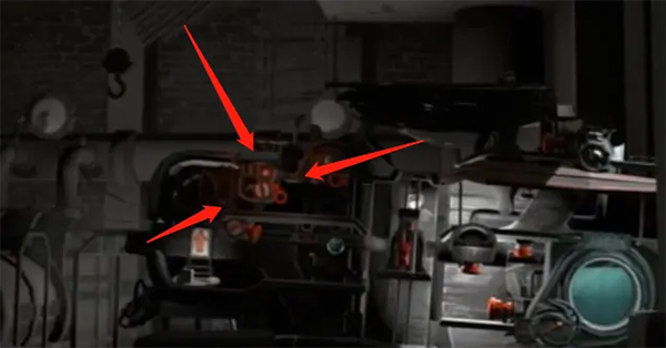 图中高亮的是机关,橙红色,所有图中都是这种颜色机关,由于人只能控制前后和跳跃动作,所以按钮基本就是顶,踩,推 这几种。能量液用于驱动后面的 “房车(帆车)”。能量液不直接叫燃料,因为它后面可以用来灭火,叫燃料有点违和。