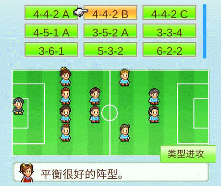 比赛的阵型。可以用喜欢的队形进行比赛。年末替换教练的话,队形有可能会增加。