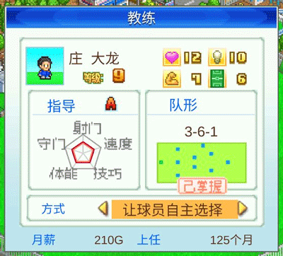 掌管训练,与训练经验值的取得量有关。还会左右比赛后研究点数的取得量。合同延长的话等级会提高。