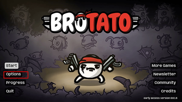 1、下载安装好土豆兄弟,打开游戏在主界面点击options;