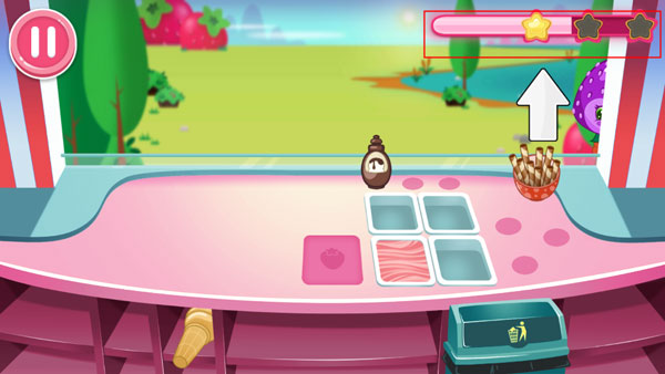3、将冰淇淋给顾客之后就能收集右上角的心心进度条。