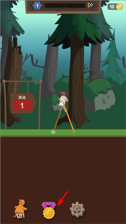 1、玩家进入游戏,通过新手引导后,进入游戏主页面,点击下方的奖牌;