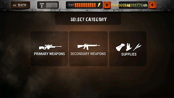 可以看到装备已经分为了三类,分别是【PRIMARY WEAPONS】主武器、【SECONDARY WEAPONS】副武器、【SUPPLIES】补给道具。