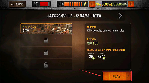 2、然后就进入到了选择场景界面,目前只开放了第一个场景,我们直接点击右下角的【PLAY】按钮。
