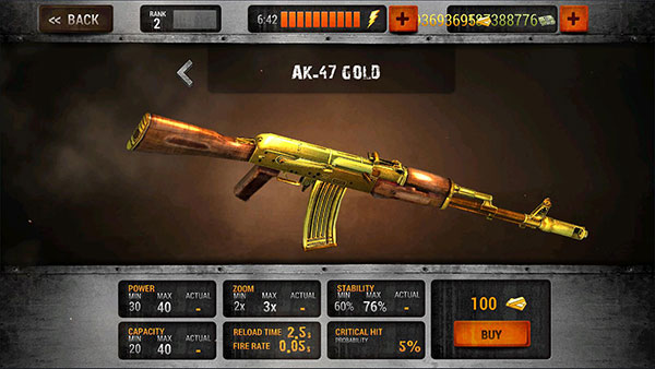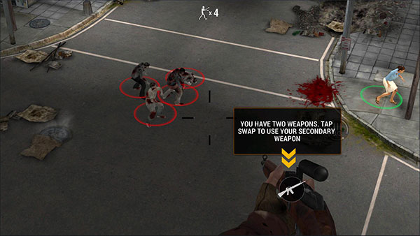 简单易上手的玩法,点击打开瞄准镜通过左手移动屏幕瞄准僵尸的头,随后点击开火迅速击杀,并继续解决更多的僵尸,需要注意的是,举中头部可以获取更多金币,帮助玩家更快的购买你需要的强大武器,升级你的武器属性以此获得强大的属性。