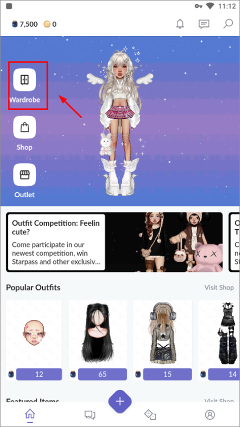 1、进入游戏后,点击Wardrbe开始你的创作。