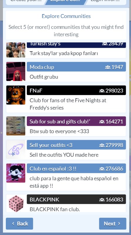 4、选择你所感兴趣的社区板块,最少要选择五个。