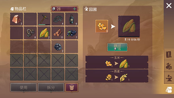 这时候,你只需要每天去野外采集点玉米粒,然后回家煮玉米就可以了。或者顺便打野,回家吃烤肉,也是极好的。