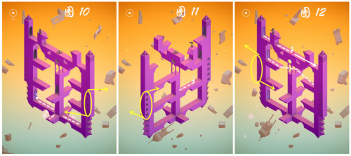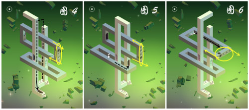 纪念碑谷游戏为玩家准备了十个不一样场景的关卡,这些关卡建筑都是通过奇妙几何体相结合打造的,而玩家需要操控主角艾达通过旋转、移动、颠倒等一些独特的方法为她制作可以逃脱的路线并通过探索隐藏小路、发现视力错觉以及击败神秘的乌鸦人来帮助沉默公主走出纪念碑迷阵。其游戏界面清新,操作易上手,里面如幻的境界让玩家仿佛如梦其中,小心你的眼睛,你看到的不一定是真实的。
