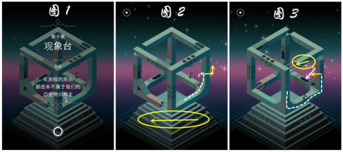 在《纪念碑谷》第十关观象台中,需要利用好正方体转动与道路机关的方向变动来过关,下面我们一起来看一下过程。