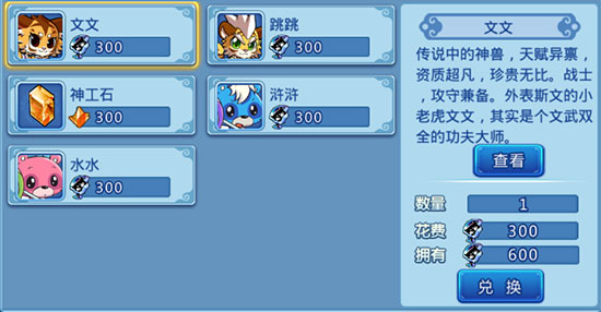 通过300个神兽魂魄碎片可以兑换4个神兽其中的一个。