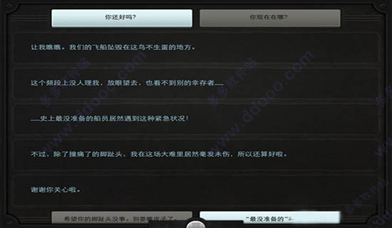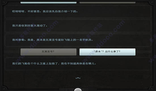 可惜,这并不如开发商所愿。在与泰勒对话的过程中,确实能很自然的“入戏”,但并非融入到故事的设定中,而是现实与朋友聊天一样。在对话里,我完全感觉不到泰勒是一个遭遇过事故的人,按道理来说,一个忙着求生的人,是不会利用不稳定的通信器与外界的人闲聊,应该是抓住每一个可以让自己活下去的机会,争取每一分每一秒。